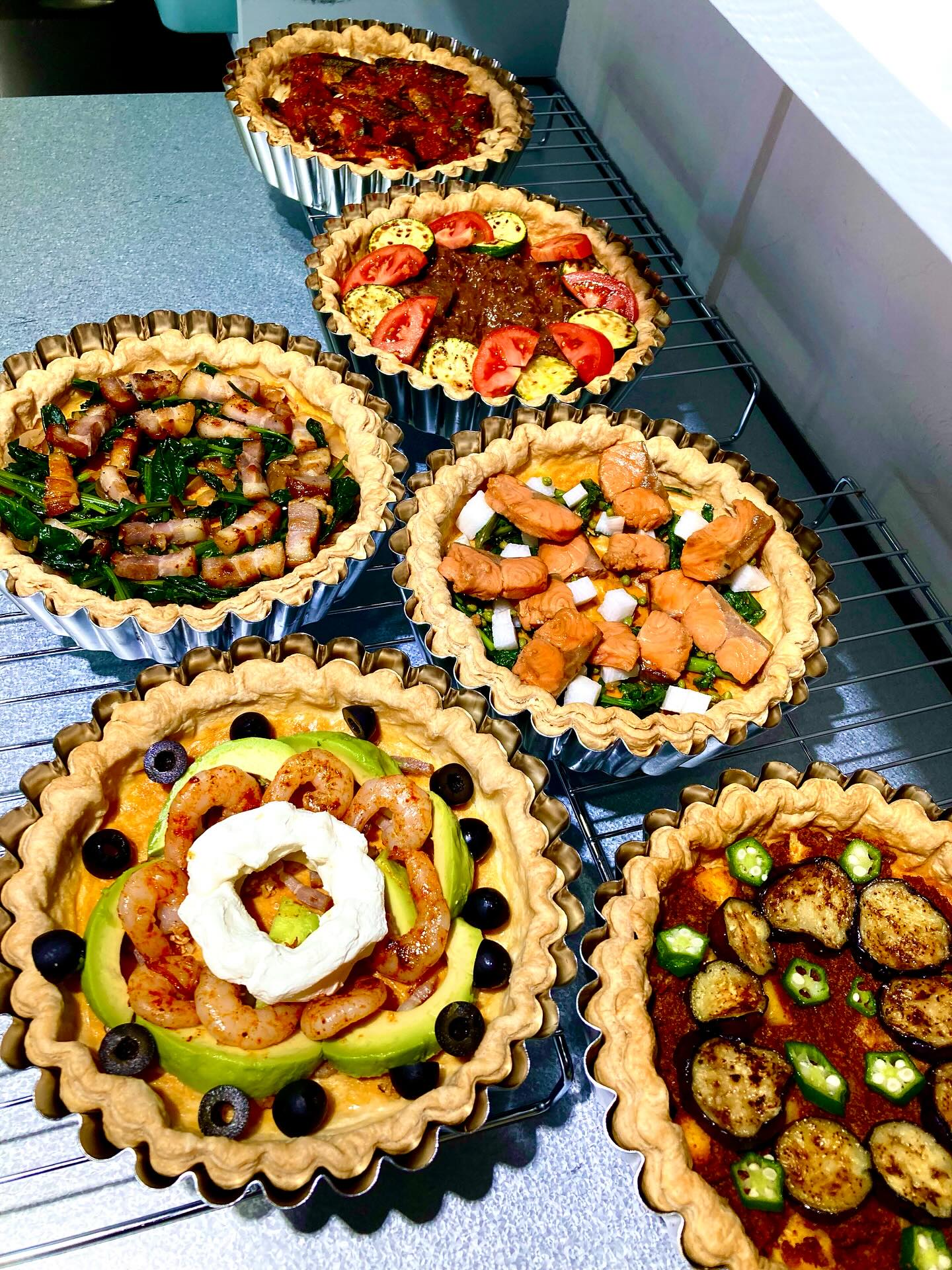 . こんばんは。 本日もご来店いただきまして ありがとうございました。 明日はキッシュ5種、タルト9種焼こうと思ってます。 【キッシュ】 ⚪︎自家製ベーコンのキッシュロレーヌ ⚪︎さんまと舞茸、茄子のキッシュ ⚪︎エビとアボカド、クリームチーズのキッシュ ⚪︎道産牛スネ肉と野菜煮込みキッシュ ⚪︎キーマカレーと彩り野菜キッシュ new (香味野菜をじっくりじっくり炒めた コク深いキーマカレーには、道産じゃが芋 茄子、オクラを合わせました。) 【タルト】 ⚪︎無花果とゴルゴンゾーラ ⚪︎杏 ⚪︎キウイとクリームチーズ ⚪︎プルーンと葡萄 ⚪︎ピーカンナッツとチョコレート ⚪︎りんご ⚪︎レモンとココナッツ ⚪︎プルーンと紅茶 ⚪︎ハスカップ 明日も皆さまのご来店を 心よりお待ちしております♩ #ふしみのタルトとキッシュ。 #タルト #ふしみ #テイクアウト #もいわ #キッシュ #札幌 #焼き菓子 #焼き込みタルト #ワイン #専門店