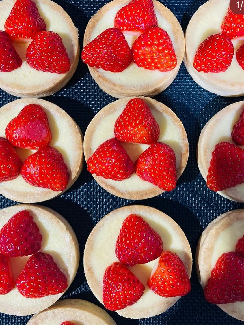 . こんばんは。 明日はキッシュ5種、タルト11種焼く予定です。 ⚪︎苺とホワイトチョコレートのタルト (クランブルものせて、甘酸っぱい苺をお楽しみください) 朝一でピティビエも焼きますので どうぞよろしくお願い致します^^ 足元にお気をつけて お越しください。