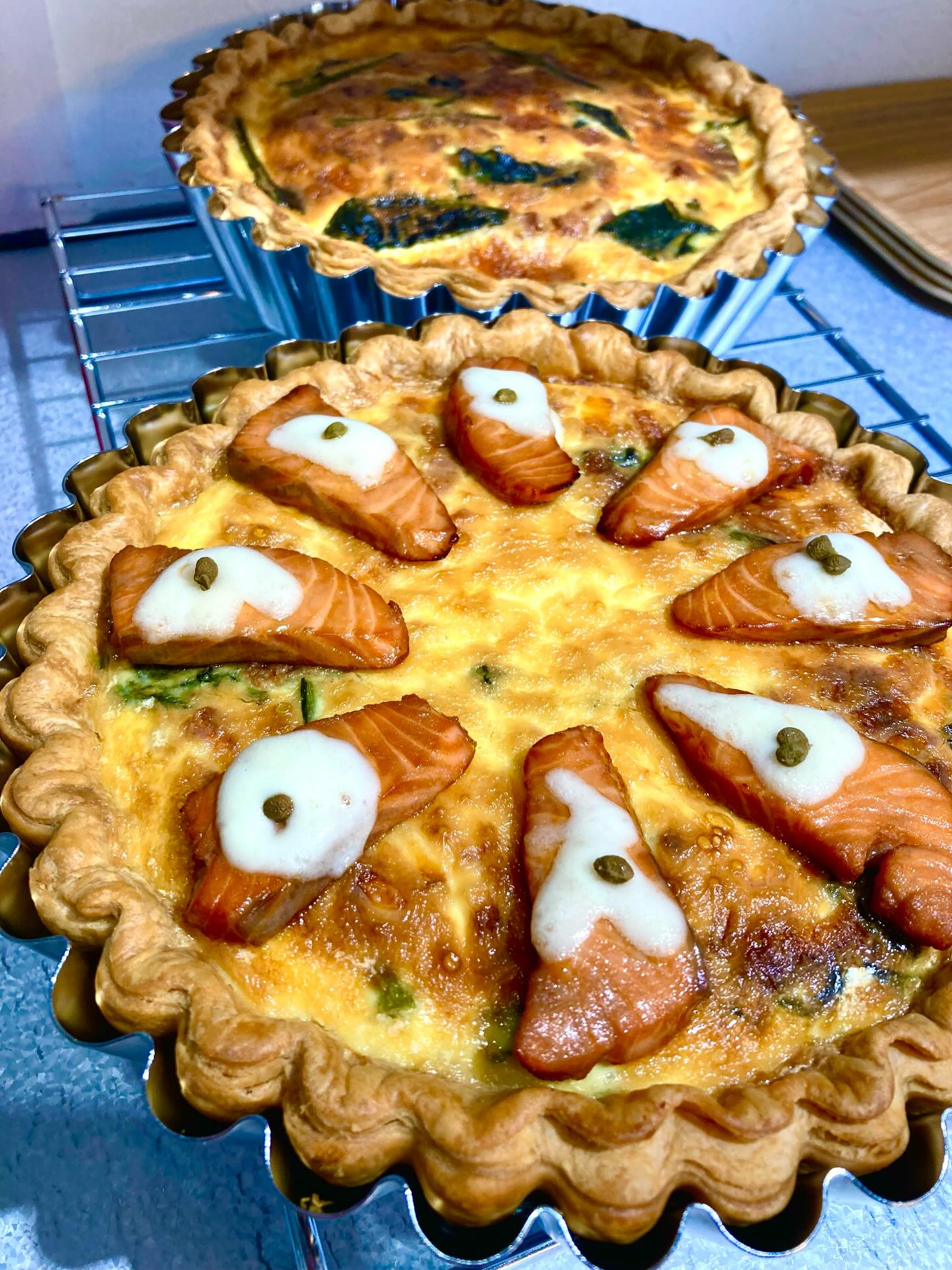 . こんばんは。 本日も足元の悪い中、ご来店いただきまして ありがとうございました。 今週、久しぶりに復活したキッシュ。 ⚪︎漬けサーモンと実山椒のキッシュ  (自家製醤油だれに漬けたサーモンを ごま油でサッとソテーして、春菊と長芋を合わせました。 実山椒がアクセントになり、ビールから白ワイン、日本酒まで合うキッシュ♩Open当初から人気のキッシュです。 明日、日曜日はお家でゆっくり キッシュとタルトでくつろぎ時間いかがでしょうか^^ 皆さまのお越しを お待ちしております! #ふしみのタルトとキッシュ。 #タルト #ふしみ #テイクアウト #もいわ キッシュ 札幌 焼き菓子 焼き込みタルト ワインふ