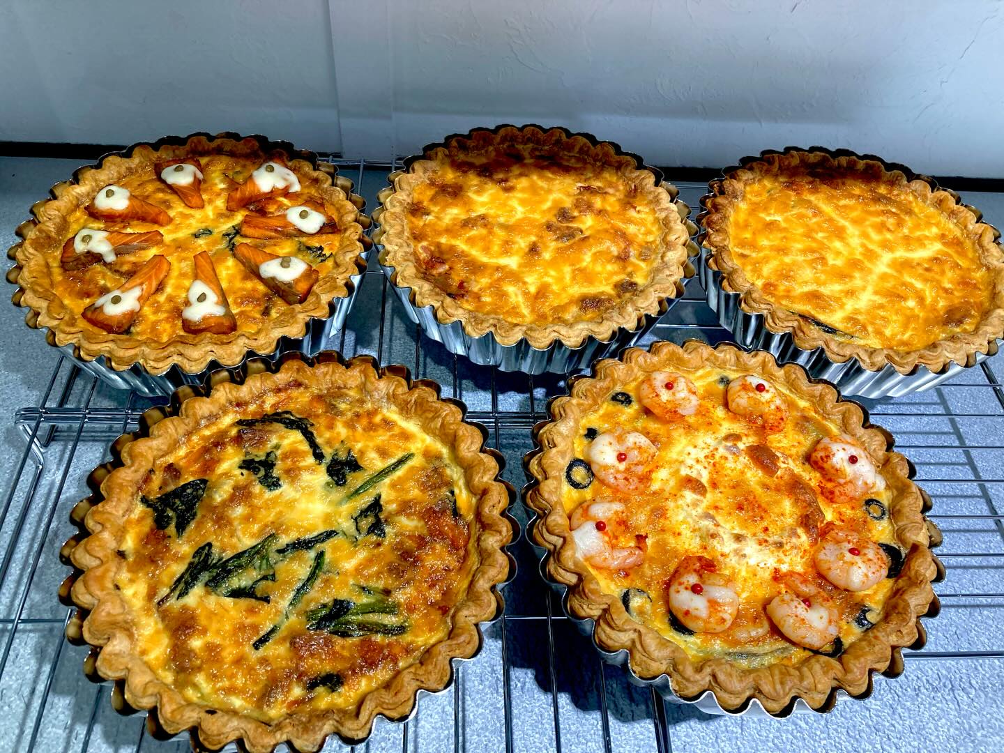 . おはようございます。 本日はキッシュ6種、タルト8種ご用意しております。 【キッシュ】 ⚪︎牡蠣の味噌クリームキッシュ ⚪︎エビとアボカド、クリームチーズのキッシュ ⚪︎自家製ベーコンのキッシュロレーヌ ⚪︎かぼちゃのミートソースキッシュ ⚪︎漬けサーモンと実山椒のキッシュ ⚪︎鶏肉のシュクメルリ風キッシュ 【タルト】 ⚪︎洋梨とブルーベリー ⚪︎濃厚チョコレート ⚪︎りんご ⚪︎キウイとクリームチーズ ⚪︎れもん ⚪︎プルーンと紅茶 ⚪︎ハスカップ ⚪︎無花果とゴルゴンゾーラ お取り置きもできますので、 どうぞよろしくお願いします。 お気をつけてお越しください^^