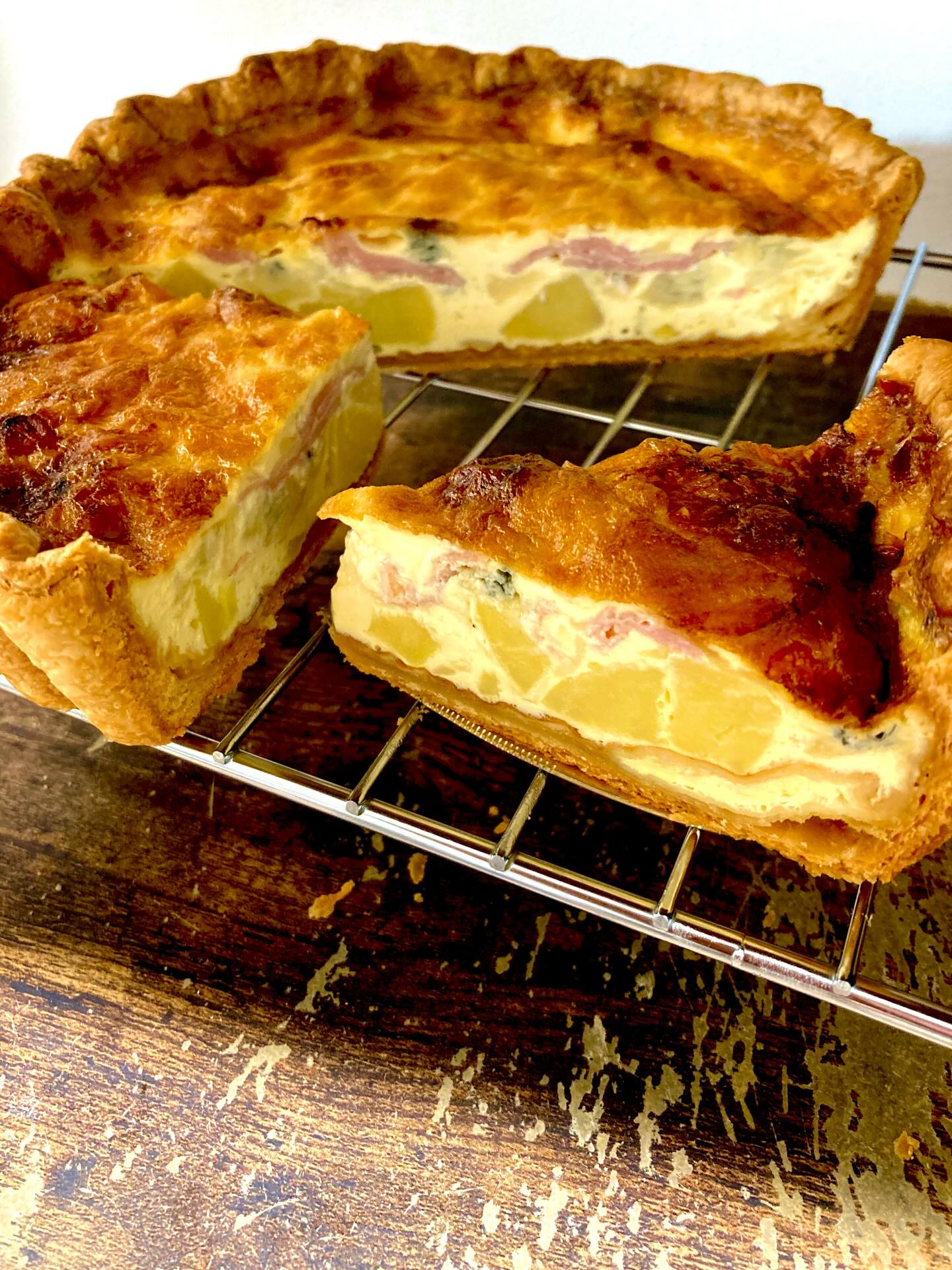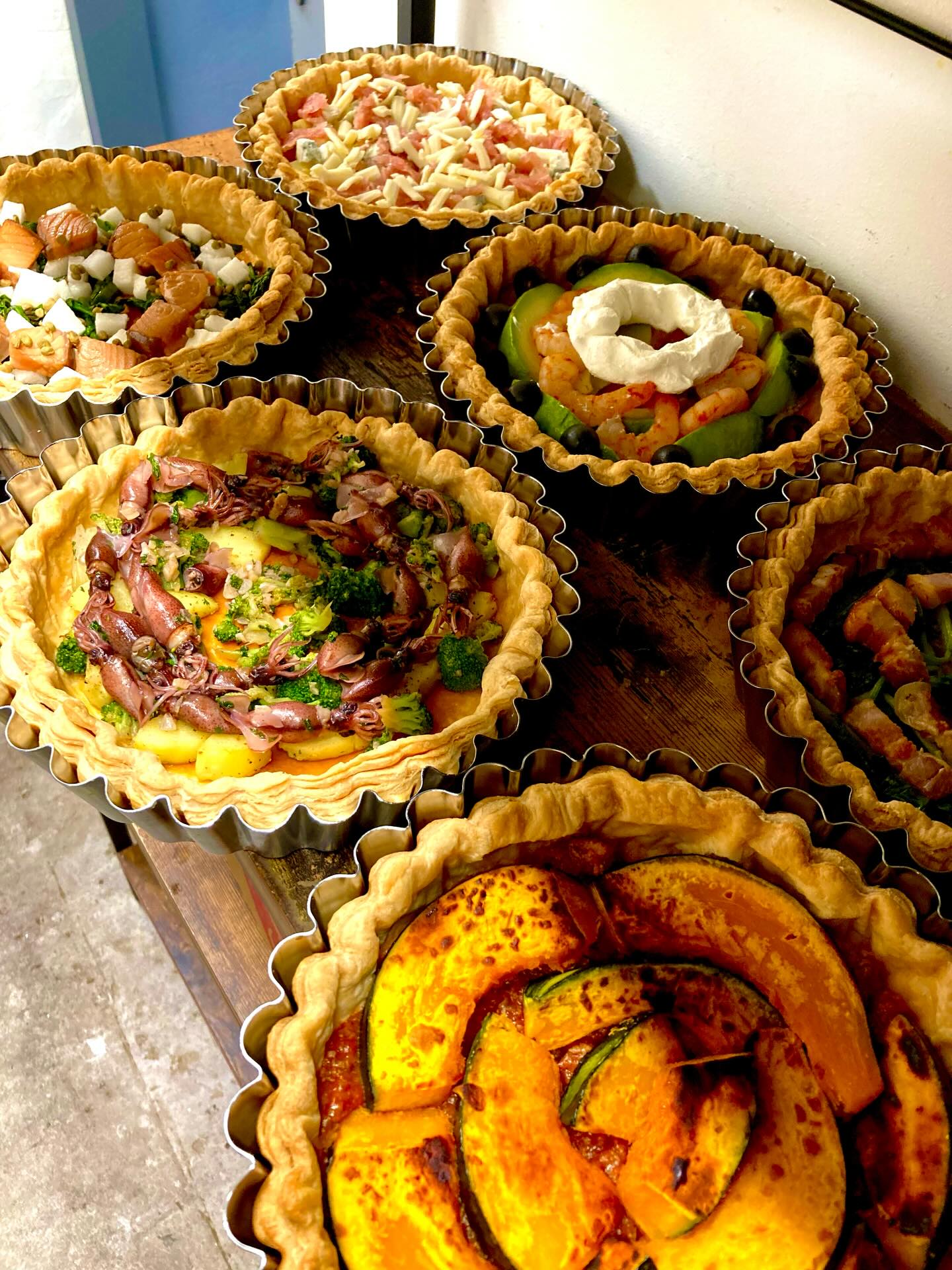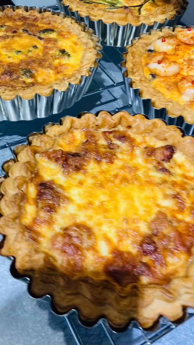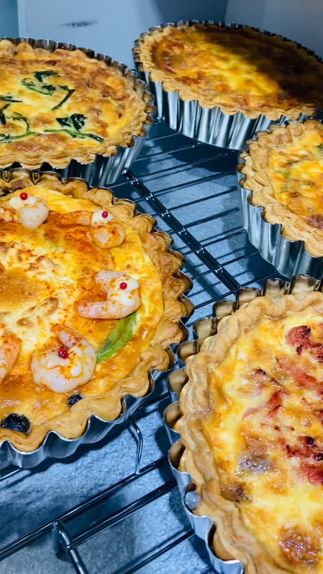 . おはようございます。 本日キッシュ7種焼いてます。 ⚪︎牛肉とエスカルゴバターキッシュ ⚪︎カボチャのミートソース ⚪︎生ハムとゴルゴンゾーラ ⚪︎大葉香る梅照り焼きキッシュ ⚪︎漬けサーモンと実山椒のキッシュ ⚪︎エビとアボカド、クリームチーズのキッシュ ⚪︎自家製ベーコンのキッシュロレーヌ お家でのんびりキッシュとタルト、 いかがでしょうか^^ 足元が悪いので、どうぞお気をつけて お越し下さい。