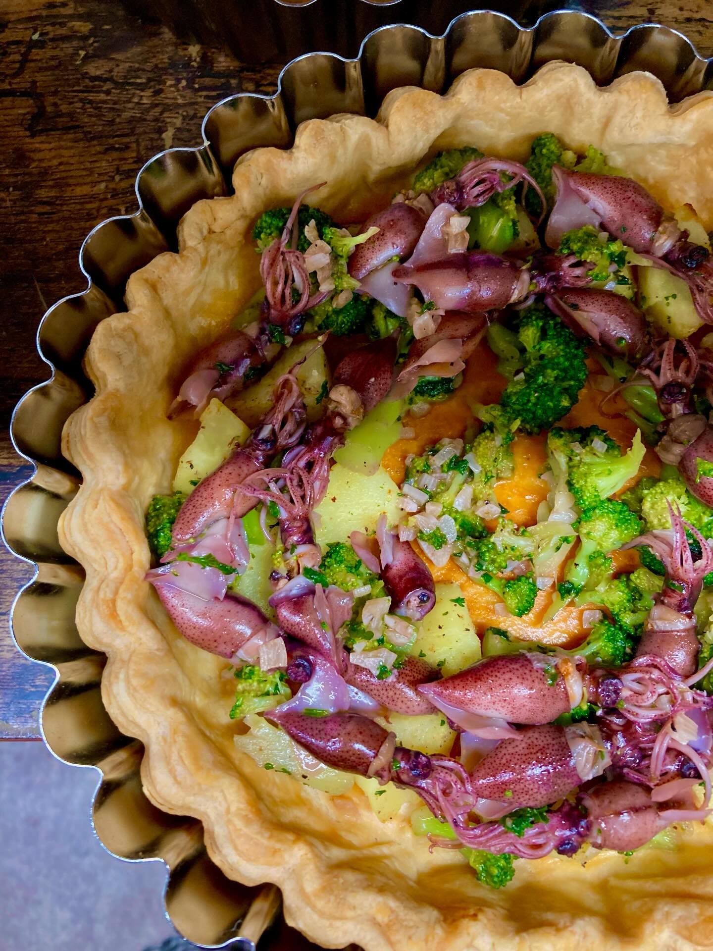 . おはようございます。 newキッシュ ⚪︎蛍イカのペペロンチーノキッシュ! (ブロッコリーとジャガイモを合わせました。 ビール、白ワイン、日本酒が飲みたくなるキッシュ♩) 本日はキッシュ6種、タルト12種焼いて 皆さまのお越しをお待ちしております! 閉店後、看板が灯ってましたら お気軽にお入りください^^